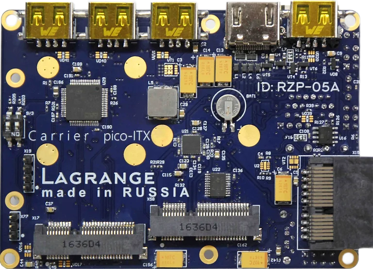 Lagrange Pico представляет собой ультра компактную интерфейсную плата для SoM. Предназначена для малогабаритных компьютеров, встраваемых и мобильных решений, оснащенных высокопроизводительными вычислителями с архитектурами x86/64, ARM/ARM64, FPGA.